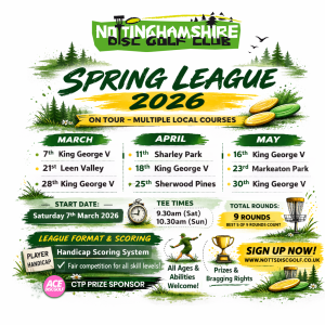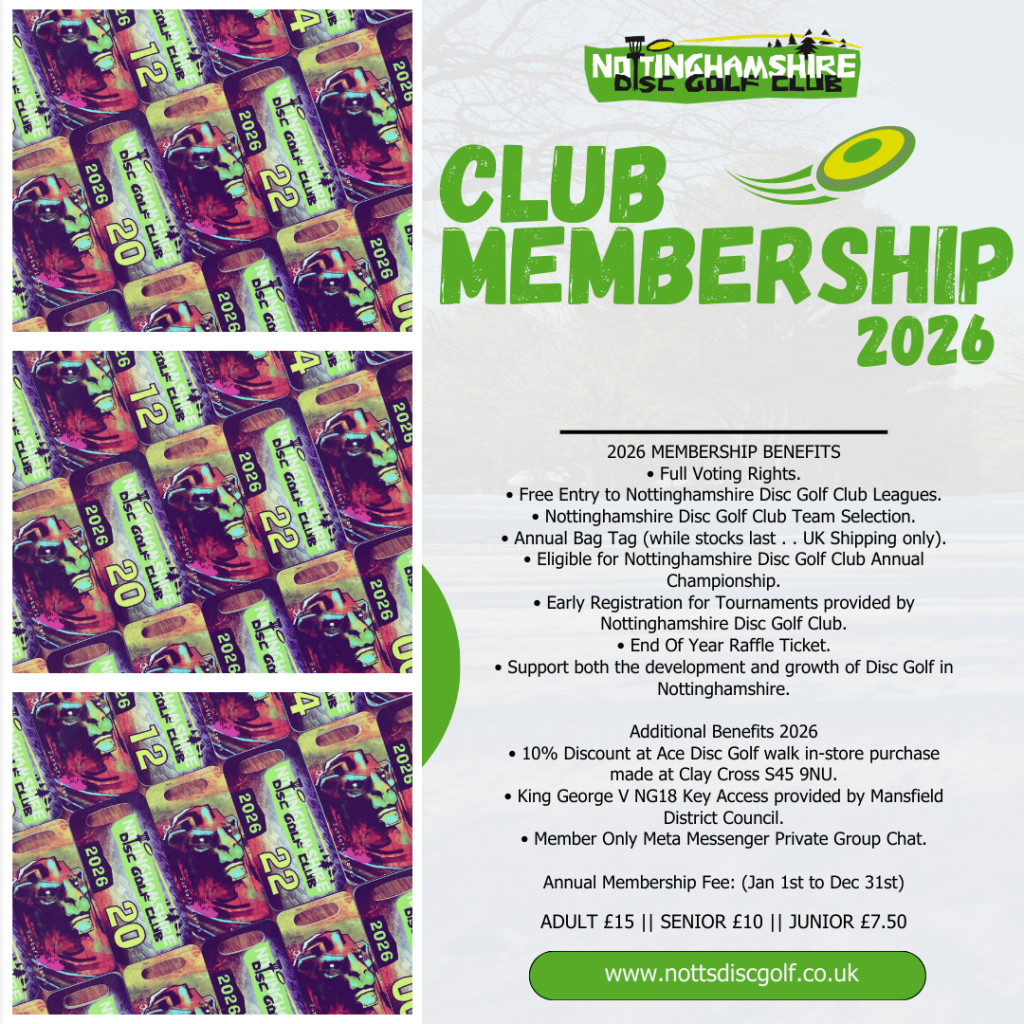 • Free Entry to Nottinghamshire Disc Golf Club Leagues.